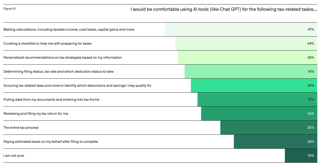 • 43% afirmam que a IA poderia fornecer recomendações personalizadas sobre estratégias fiscais;