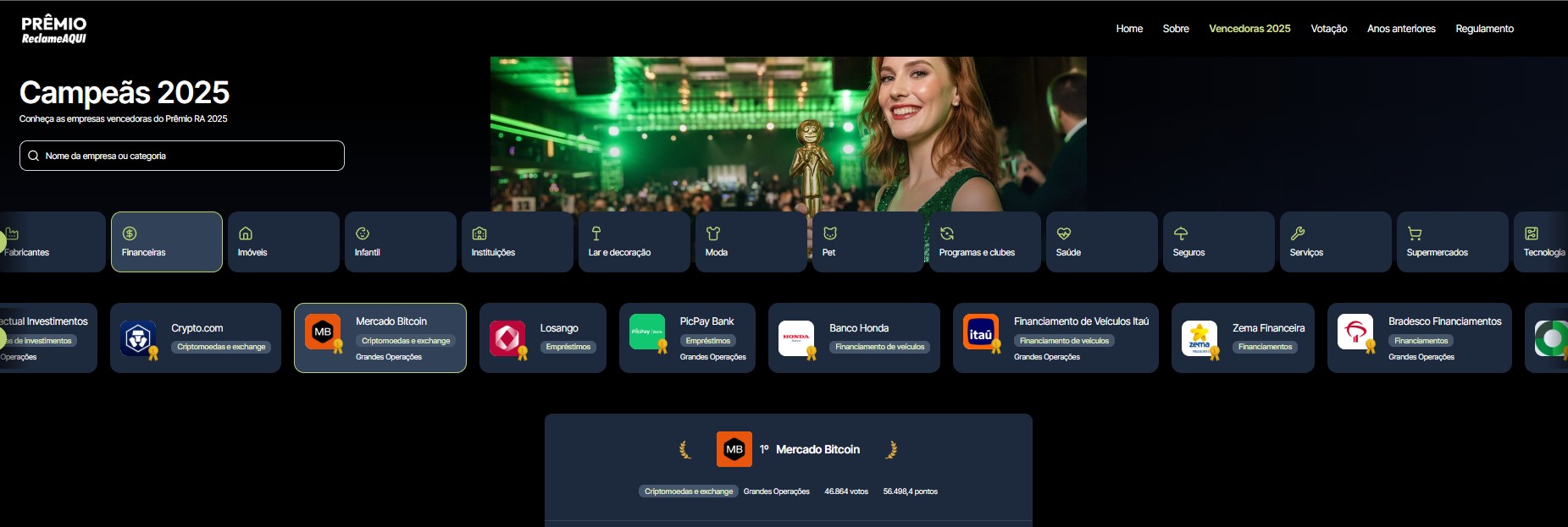 Vale destacar que, em 2024, a Crypto.com havia ocupado a segunda posição do prêmio, atrás do Mercado Bitcoin. Na ocasião, elas concorriam na Categoria Corretoras de Criptomoedas, grandes operações, que não existe mais em 2025.