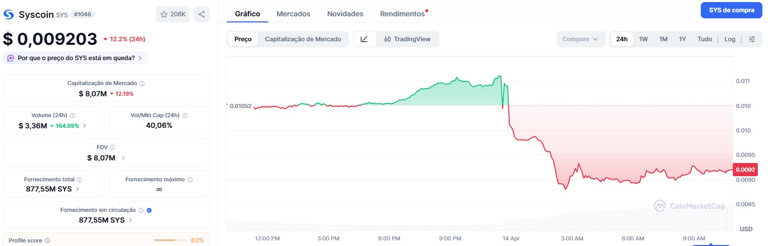 • Syscoin (SYS) – -12,2%