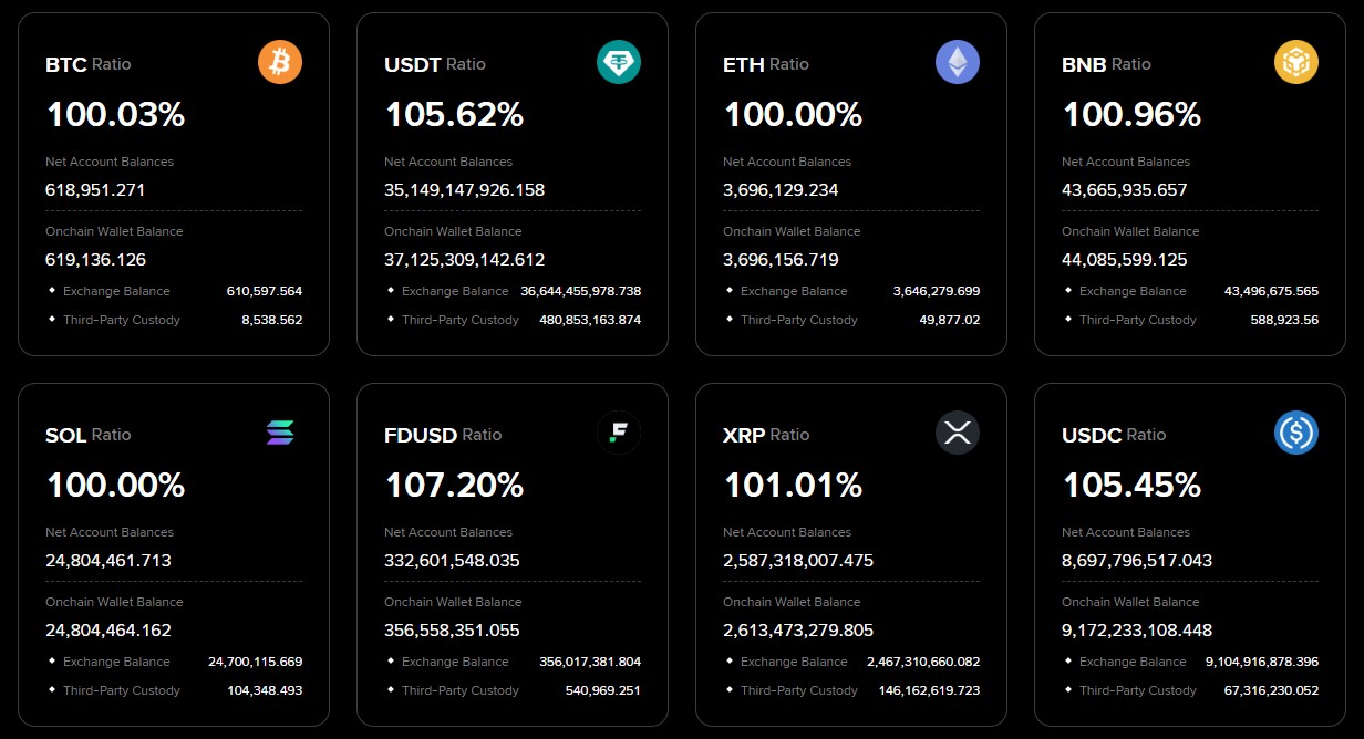 No total, a Binance está analisando as reservas de 49 criptomoedas disponíveis em sua plataforma. O destaque fica para as maiores, Bitcoin, Ethereum, USDT, BNB, XRP, USDC e Solana.