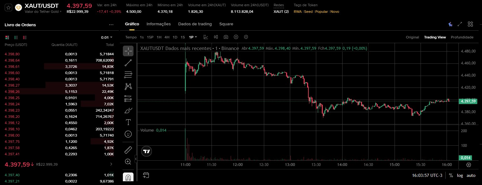 “Tether Gold (XAUt) é um produto desenvolvido para combinar os benefícios de ativos físicos e digitais, permitindo que seus detentores possuam ouro físico na forma de um token digital”, explicou a Binance.