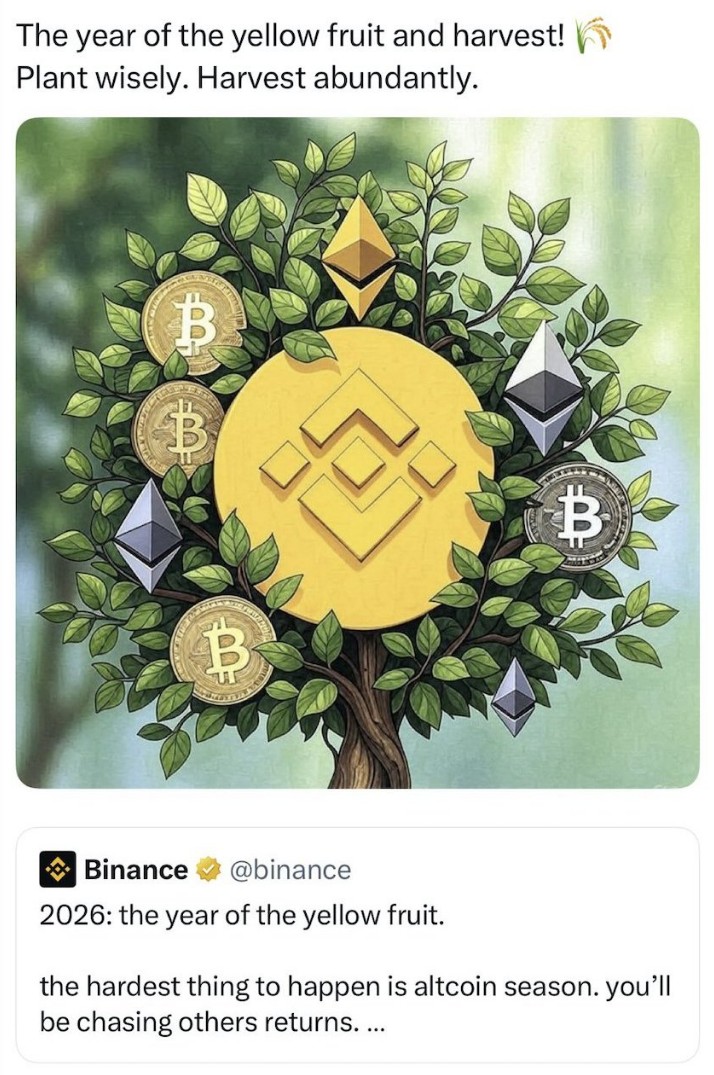 “O ano do fruto amarelo e da colheita. Plante com sabedoria. Colha abundantemente”, escreveu o perfil da Binance Futures pelo usuário agora suspenso.