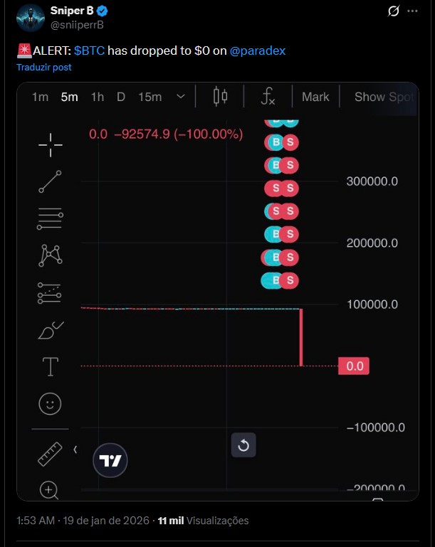 “Ok, quando postei o print, achei que era um bug na interface. Depois vi no computador que o preço voltou após ter ido a US$ 0. Agora há milhares de liquidações. Isso não parece nada bom para a @paradex”, escreveu.