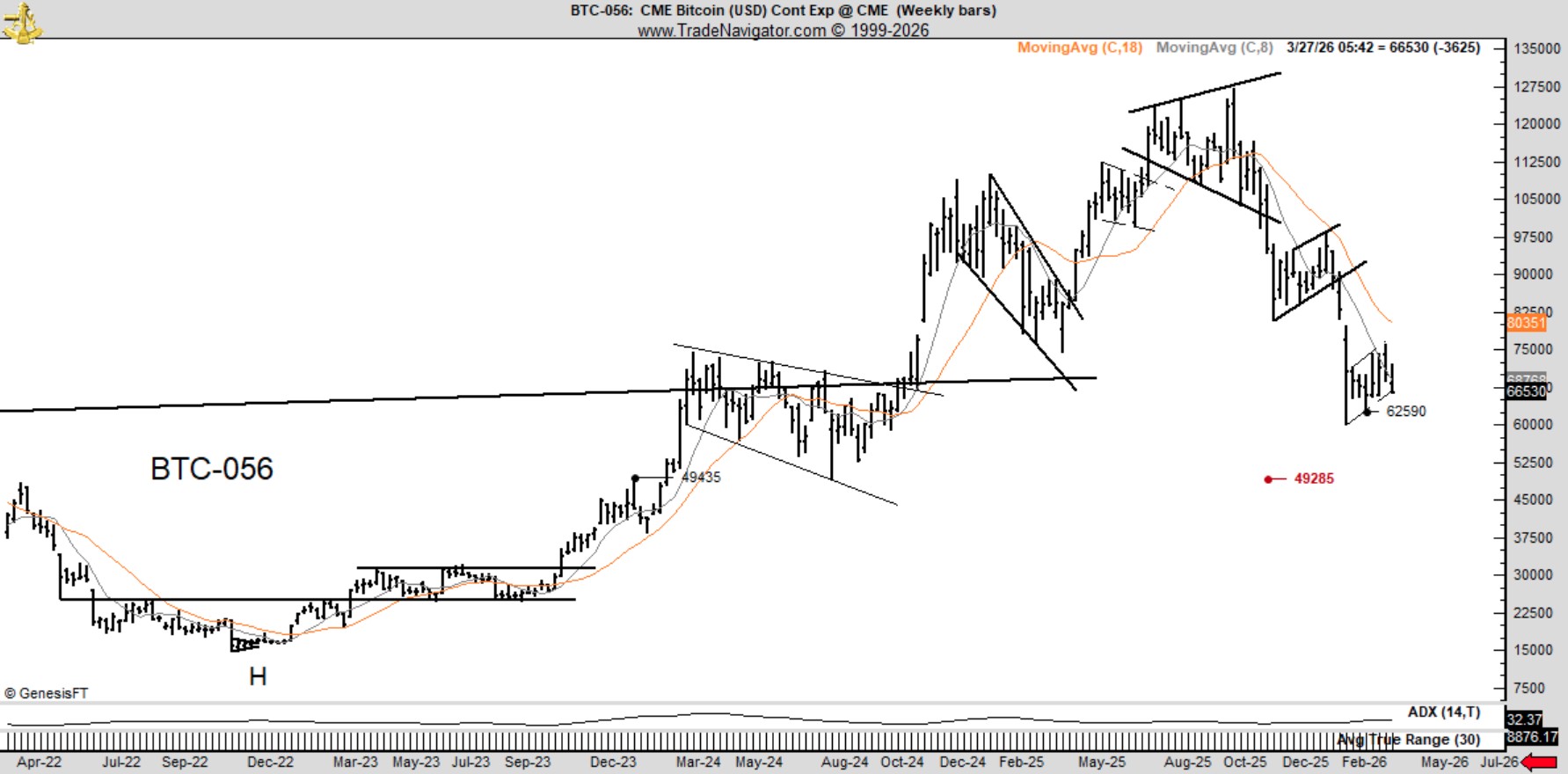A análise publicada por Peter Brandt nesta quinta-feira (26) é simples e pode ser entendida por qualquer investidor menos experiente. Em suma, o trader desenhou uma cunha ascendente que tende a ser rompida para baixo, dando sequência à queda vista em janeiro.
