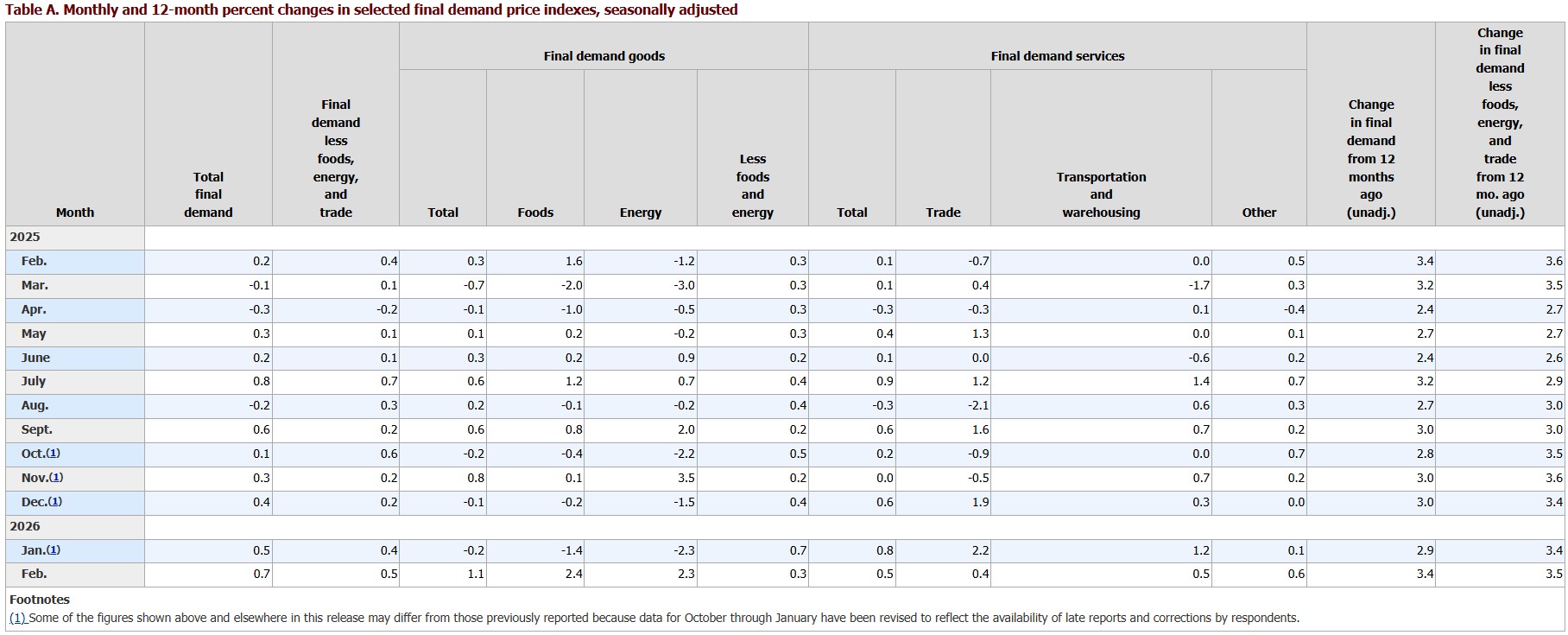 “Sem ajuste sazonal, o índice para a demanda final subiu 3,4% nos 12 meses encerrados em fevereiro, a maior alta em 12 meses desde os 3,4% registrados em fevereiro de 2025.”