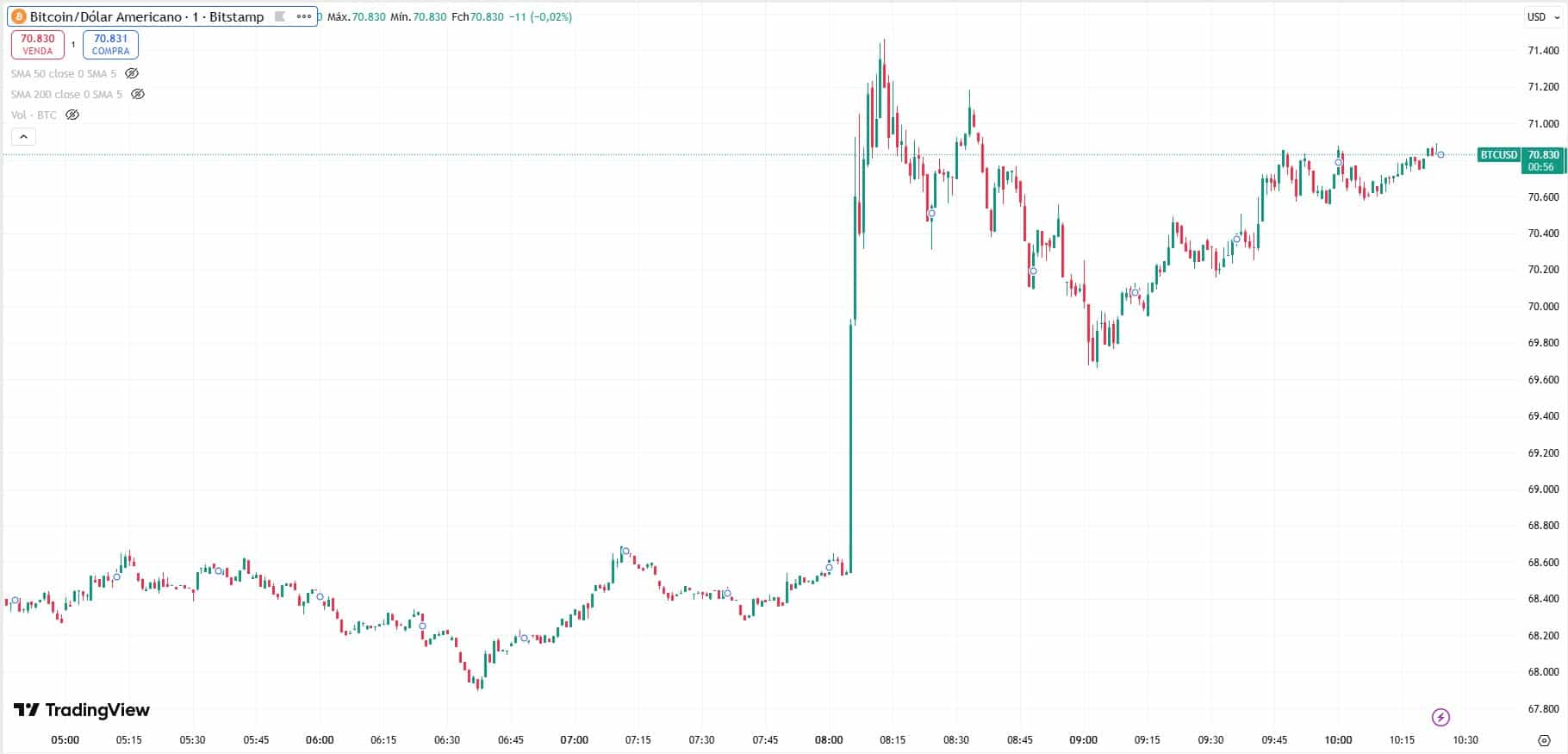 O Bitcoin inicia a semana em alta de 3%, superando novamente a faixa dos US$ 70.000. O motivo da alta está ligado às declarações de Donald Trump, presidente dos EUA, sobre os conflitos no Irã.
