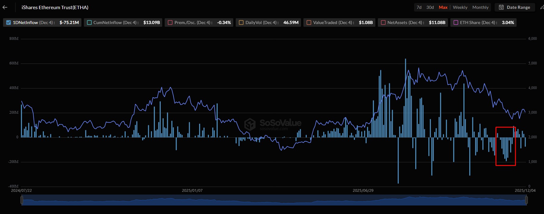 Usando de exemplo o ETHA, hoje com US$ 11 bilhões, a gestora processou US$ 980,34 milhões em saídas em 10 dias. Ou seja, cerca de 9% do total de moedas.