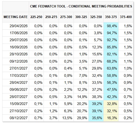 O mercado chegou a citar uma chance de 25,4% de um aumento de 0,25% já para a reunião de outubro. No entanto, a queda do petróleo melhorou as previsões, estimando que um corte seja anunciado em setembro de 2027.