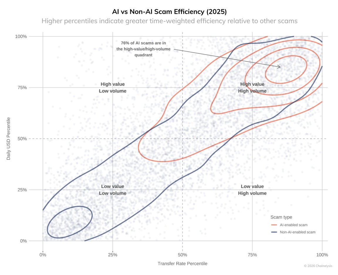 “76% dos golpes com uso de IA estão no quadrante de alto valor e alto volume ponderado pelo tempo.”