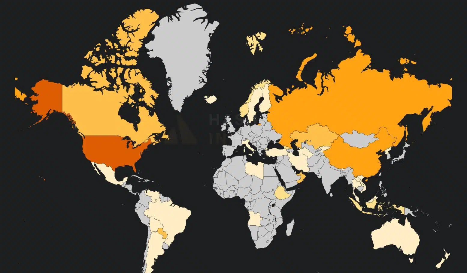 Segundo o site, o mapa é “uma representação ponderada da concentração de hashrate entre as regiões, incorporando dados de pools de mineração, fluxos de negociação de ASICs e tendências de adoção de firmware”.