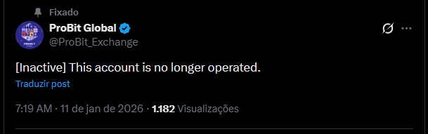 “Devido ao ambiente regulatório em rápida evolução e à reestruturação estratégica dos negócios, a ProBit Global informa oficialmente o encerramento de todos os serviços, com efeito em 25 de fevereiro de 2026, às 21:00 (UTC-3).”