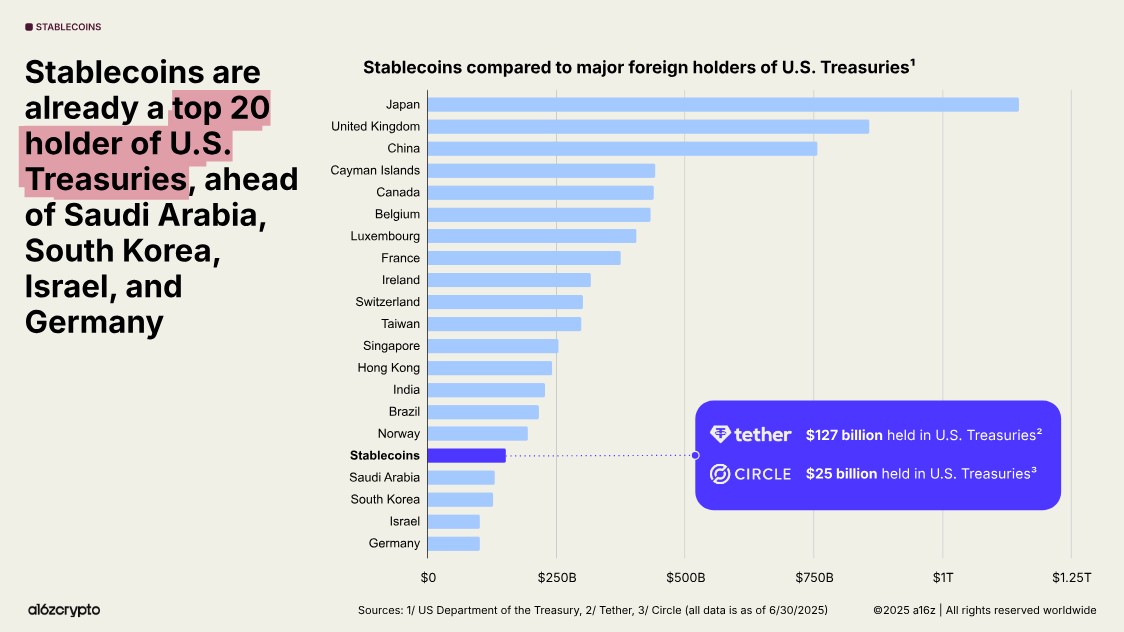 “Stablecoins são uma das formas mais baratas de enviar dólar — em menos de 1 segundo, por menos de 1 centavo”, escreveu a a16z.