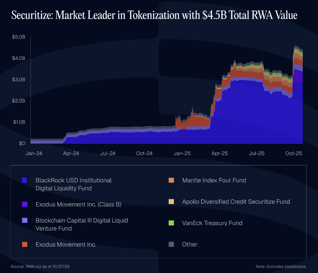 Dentre os exemplos citados estão fundos tokenizados da BlackRock, Apollo e outros, totalizando US$ 4,5 bilhões em ativos.