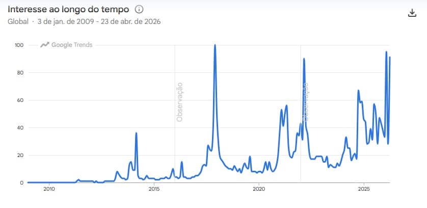 A depredação da estátua de Satoshi Nakamoto acontece em um momento em que a identidade do criador do Bitcoin volta a ser o palco das atenções no mundo. Segundo dados do Google, o interesse pelo termo está próximo ao seu pico histórico.