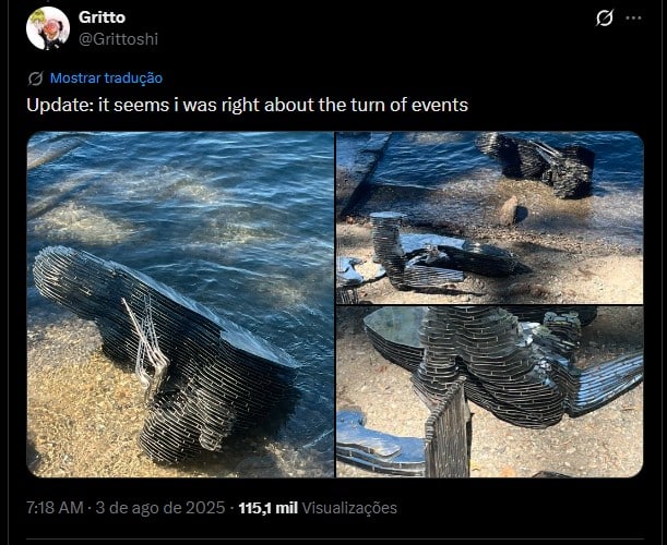 Questionado por um seguidor que visitará a Suíça sobre quando a estátua voltará ao local original, a artista por trás da obra recomendou que ele visite outro país.