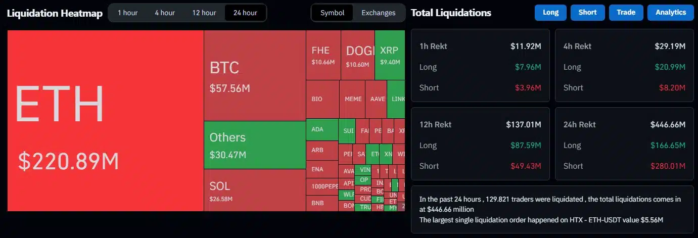 A volatilidade do Bitcoin e outras criptomoedas também agitou o mercado de futuros. Dados da Coinglass mostram que cerca de 130 mil traders foram liquidados nas últimas 24 horas.