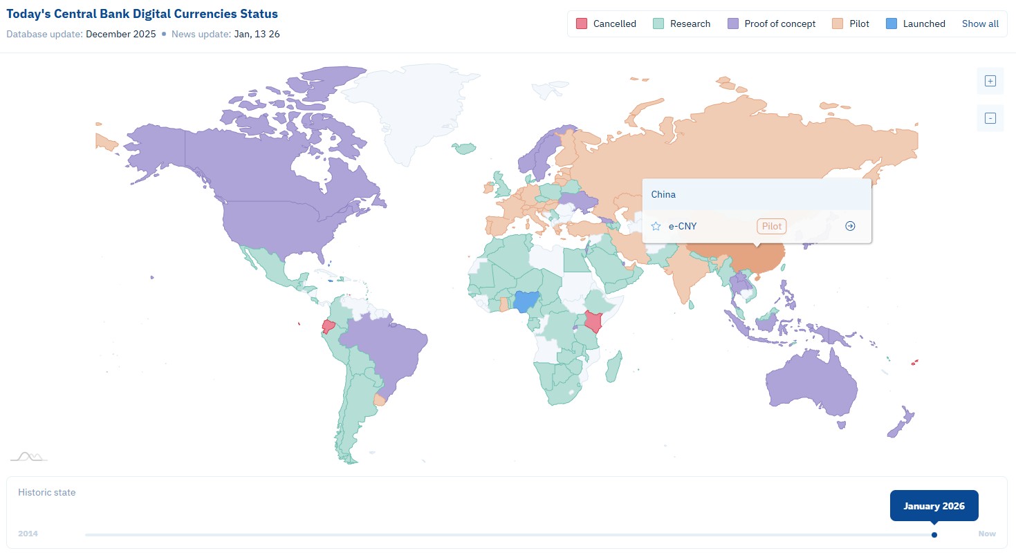 Atualmente a China é um dos países líderes na implementação de uma moeda digital estatal. Segundo o site CBDC Tracker, o Yuan Digital (e-CNY) já está em sua fase de testes.