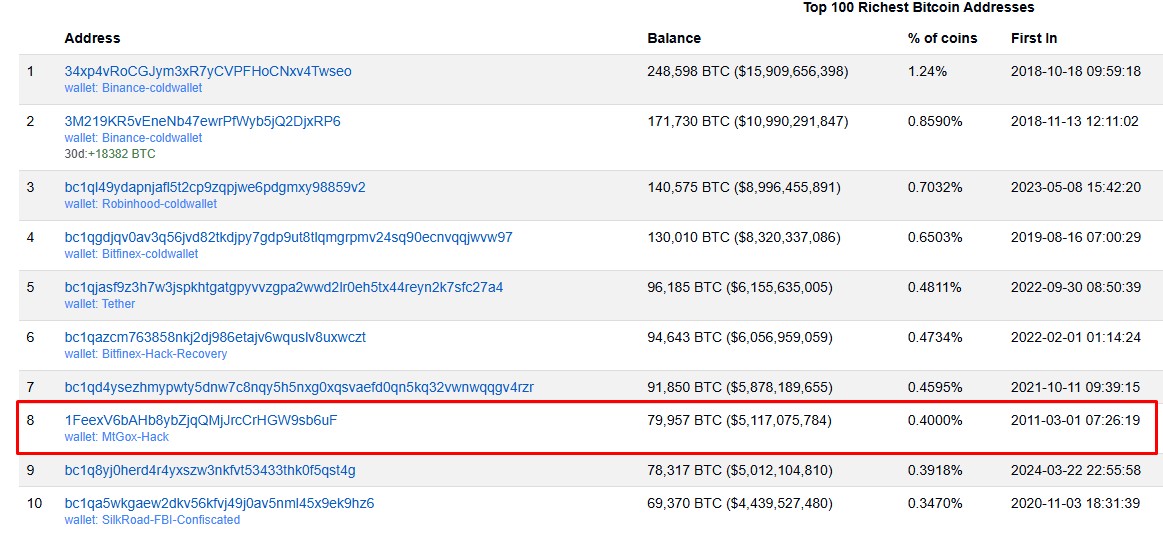 Tal endereço é um dos mais famosos do mercado por ser o 8º com o maior número de moedas, bem como um dos mais antigos.