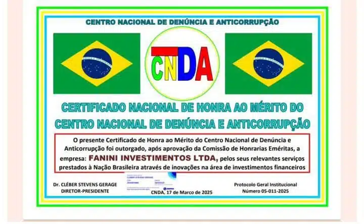 Em busca de passar credibilidade aos investidores, a empresa chegou a inventar um mal feito Certificado Nacional de Honra ao Mérito do Centro Nacional de Denúncia e Anticorrupção. Datado de março de 2025, contudo, o falso documento apresentado aos clientes apresenta um órgão público ou privado inexistente no Brasil.