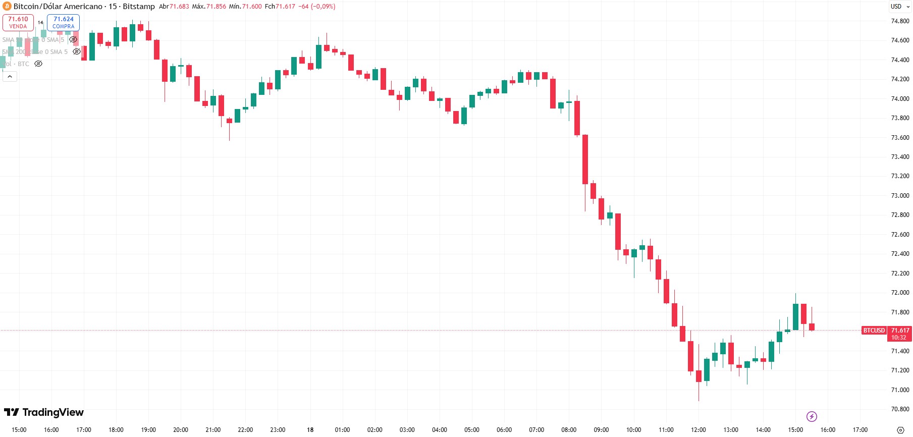 Bitcoin opera sem grandes variações após Fed manter taxa de juros inalterada. Fonte: TradingView.