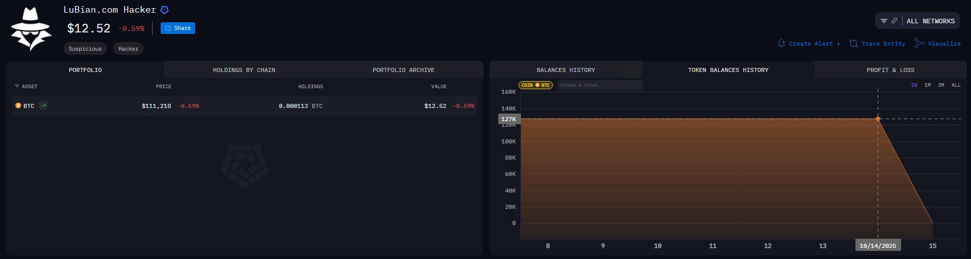 Outra mudança vista no site da Arkham é a identificação da carteira do hacker da Lubian. Até esta terça-feira (14), tais endereços do hacker apareciam com um saldo de 127 mil bitcoins, mas nesta quarta-feira (15) já aparecem zerados, mesmo sem nenhuma movimentação no período.