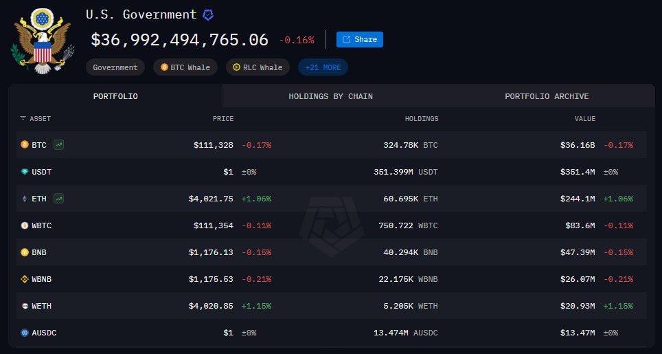 Com a adição desses bitcoins, agora a carteira do governo americano agora detém 324.780 bitcoins, avaliados em US$ 36,2 bilhões.