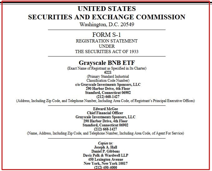 Já nesta sexta-feira (23), a Grayscale entrou com um pedido de ETF em BNB para aumentar sua oferta de criptomoedas em Wall Street. O ticker adotado será “GBNB”, seguindo o padrão visto em seus outros fundos.