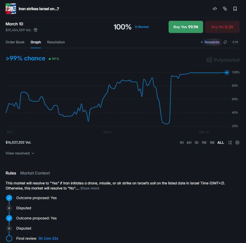 A fúria dos apostadores está ligada à conclusão de uma aposta sobre quais dias o Irã atacaria Israel usando drone, míssil ou ataque aéreo.