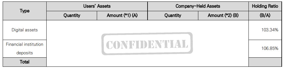 A corretora sul-coreana não mantém uma prova de reservas pública. No entanto, uma auditoria feita pela BDO em julho aponta que a corretora mantém um excesso de 3,34% em relação às criptomoedas de seus usuários.