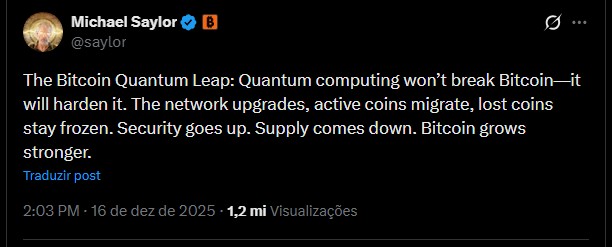 “O salto quântico do Bitcoin: a computação quântica não vai quebrar o Bitcoin — vai torná-lo mais resistente. A rede se atualiza, as moedas ativas migram, as moedas perdidas permanecem congeladas. A segurança aumenta. A oferta diminui. O Bitcoin fica mais forte.”