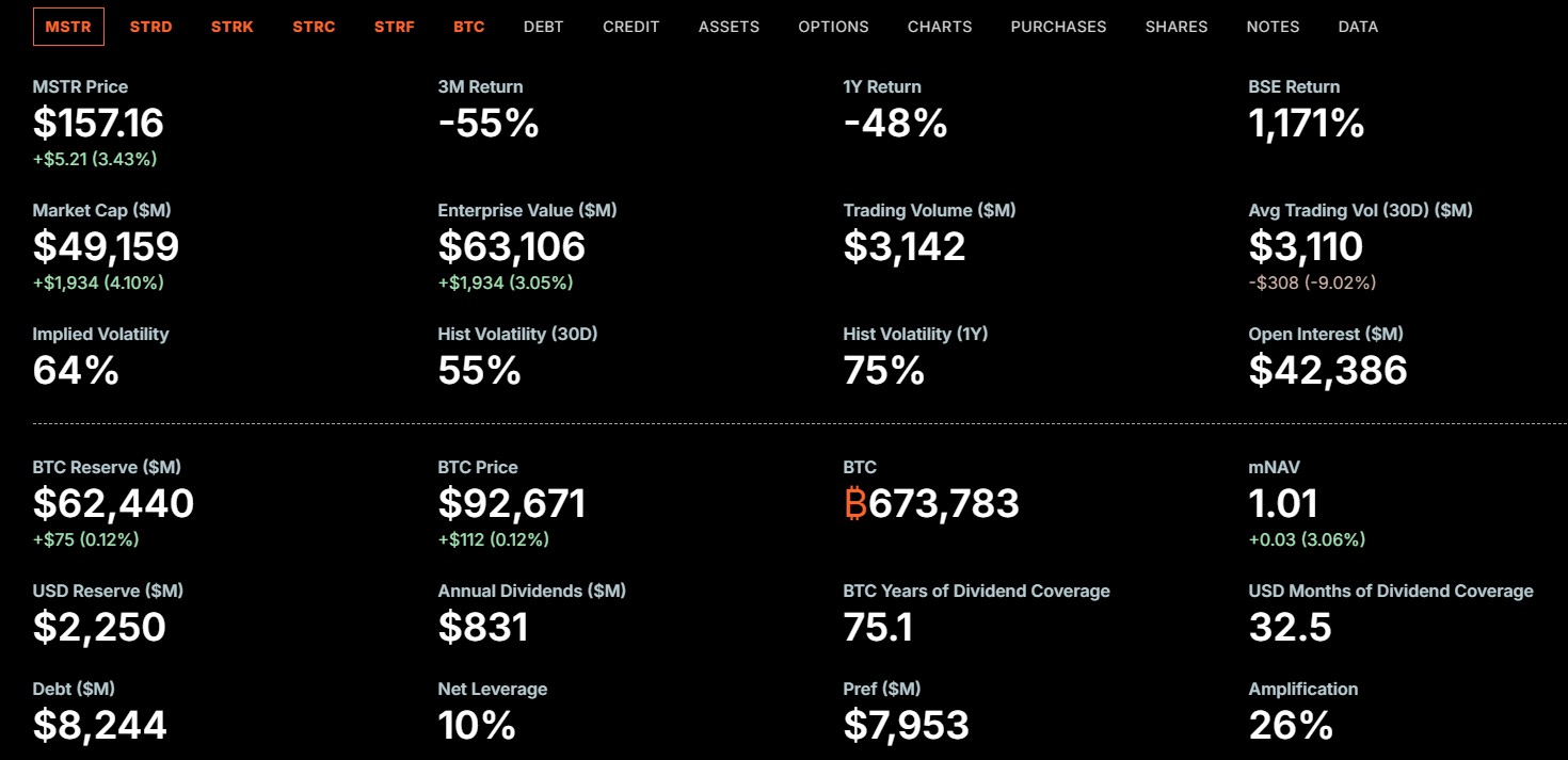 Dados compartilhados pela própria Strategy apontam que o mNAV — que mede a relação entre o valor dos bitcoins em caixa e o valor de mercado da empresa — está em 1,01, permitindo que eles continuem emitindo ações para comprar a criptomoeda, mas sem muita margem.