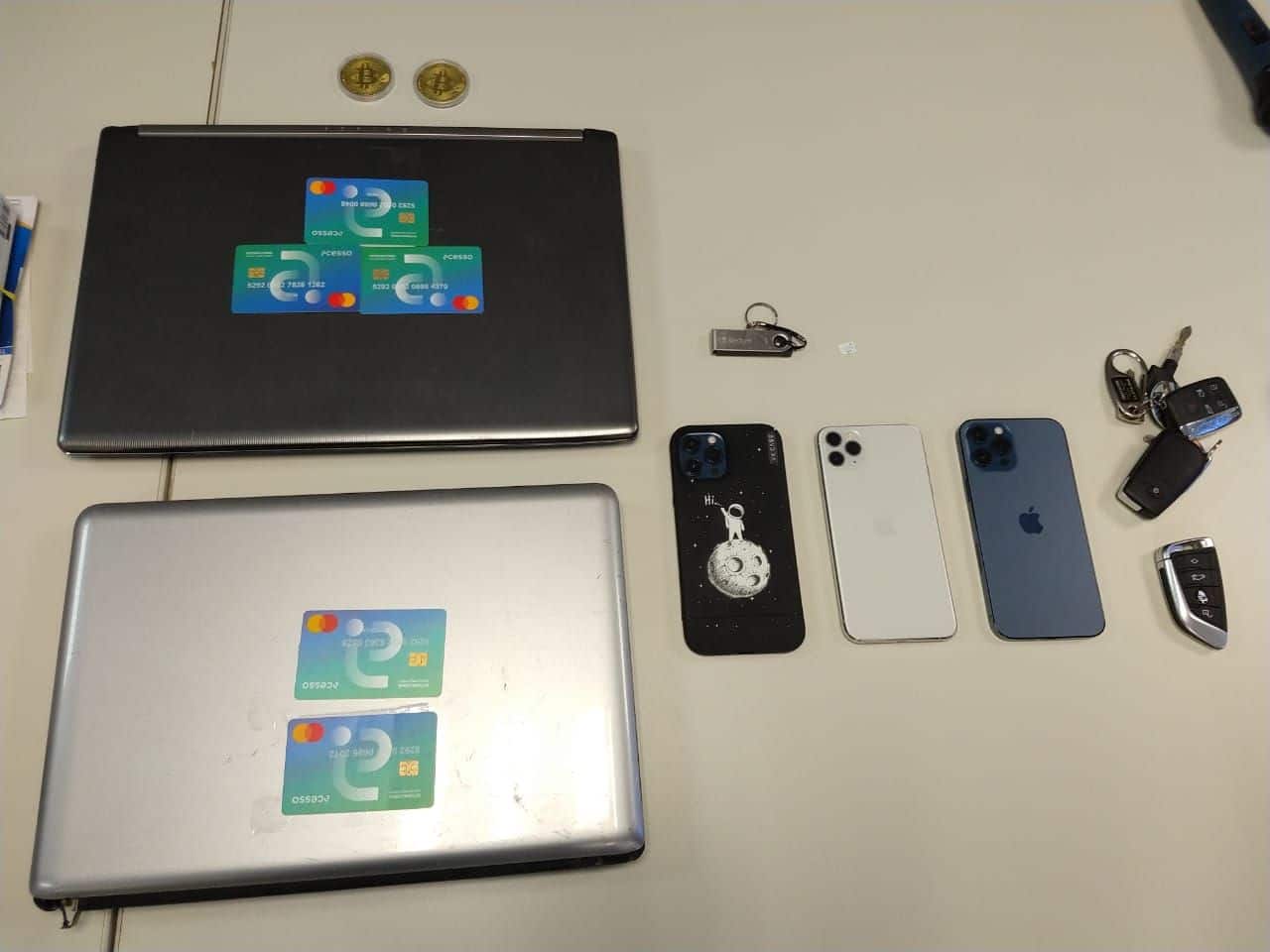 Foram, então, apreendidos uma BWM e uma Range Rover, além de drogas como LSD, notebooks, diversos chips de celular, cartões e uma maquininha de pagamento. No entanto, não foi divulgado se foi encontrado com eles alguma carteira de criptomoedas e quanto a organização recebeu em Bitcoin pelo resgate.