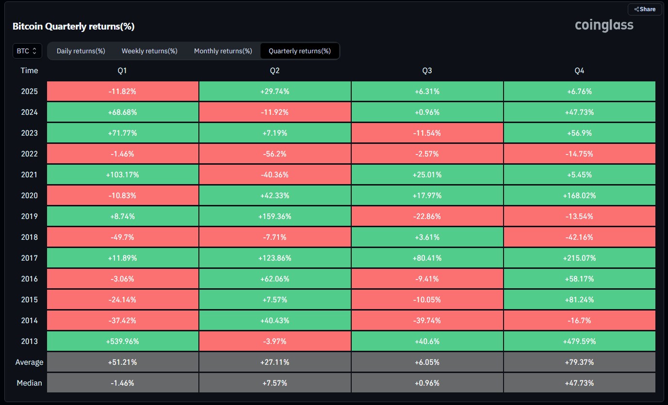 Conforme o Bitcoin possui um excelente histórico no 4º trimestre, apresentando fortes valorizações no período em 9 dos últimos 13 anos, é possível que a história se repita em 2025.