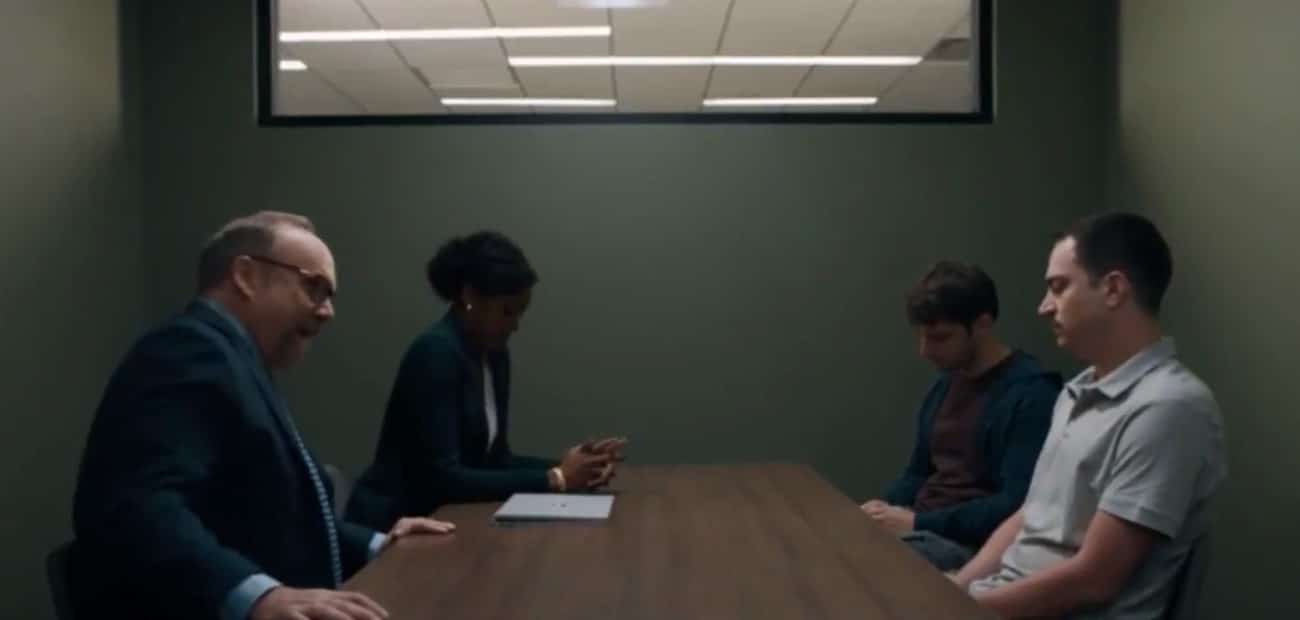Na cena em que o Bitcoin é mencionado, o advogado Chuck Rhoades, estrelado pelo ator Paul Giamatti, conversa com alguns investigados. Neste momento, Chuck pergunta aos dois jovens sobre suas atividades com a mineração de Bitcoin.