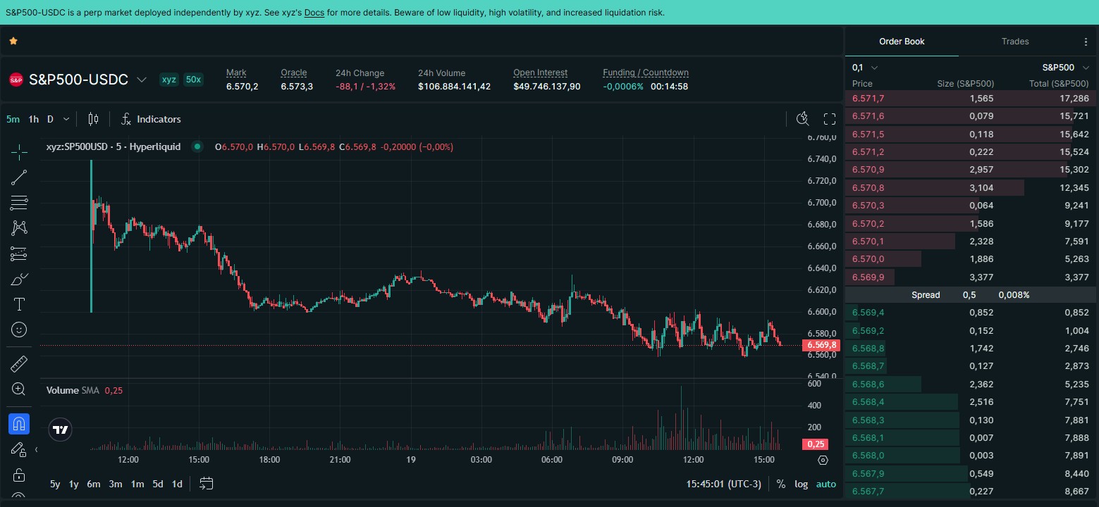 As negociações do S&P 500 estrearam na Hyperliquid na manhã desta quarta-feira (18).