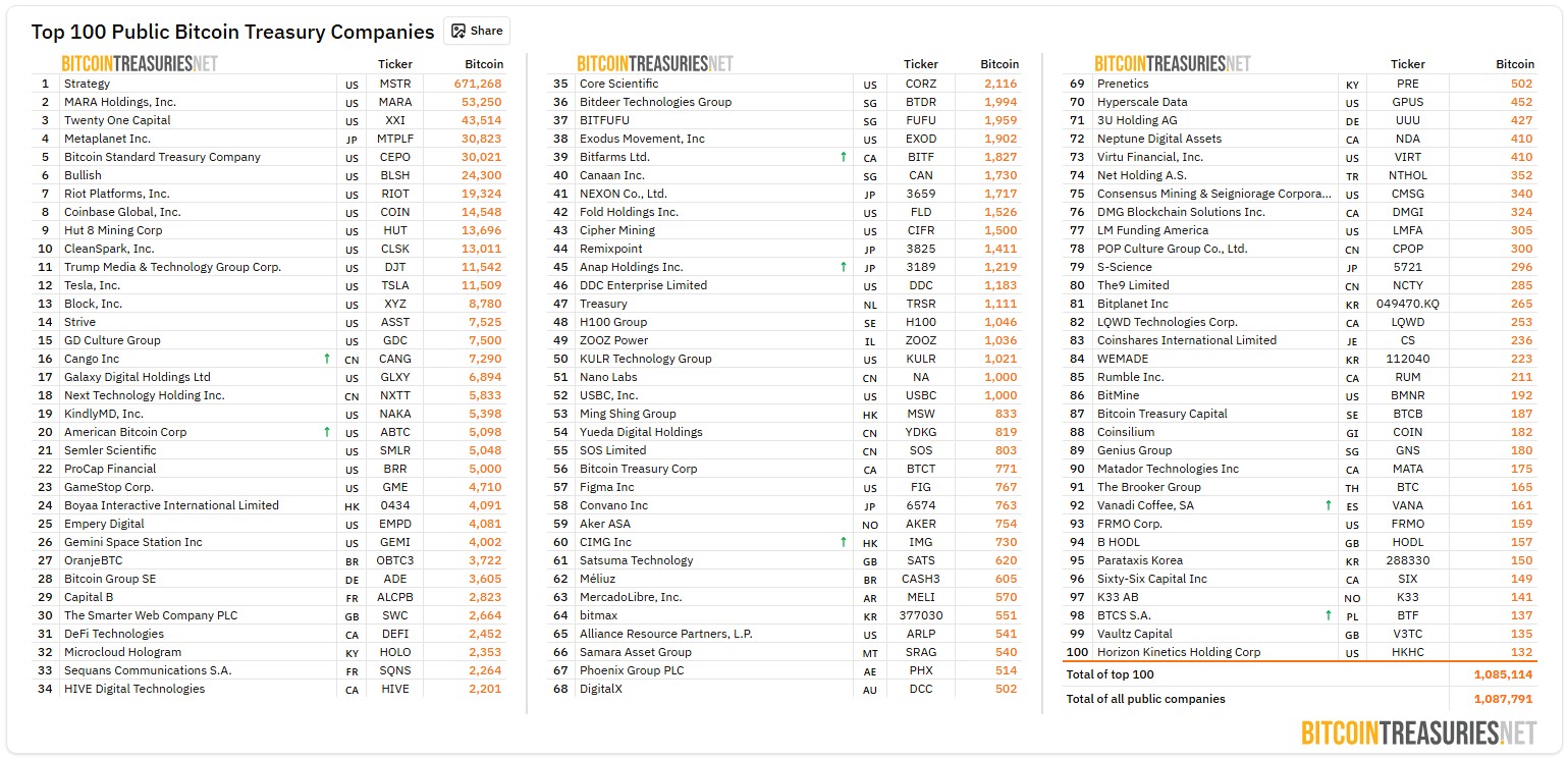 Atualmente essas empresas de tesouraria de Bitcoin detém cerca 1,1 milhão de bitcoins e a Strategy sozinha é responsável por 61,8% desse total. No entanto, são poucas que estão alavancadas e possuem dívidas.