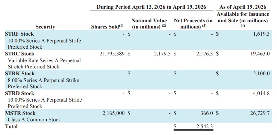 Um documento enviado à SEC aponta que a empresa levantou US$ 2,17 bilhões através da STRC, uma ação preferencial que está chamando a atenção do mercado por oferecer retornos de 11,5% ao ano, bem como outros US$ 366 milhões pela venda de MSTR.