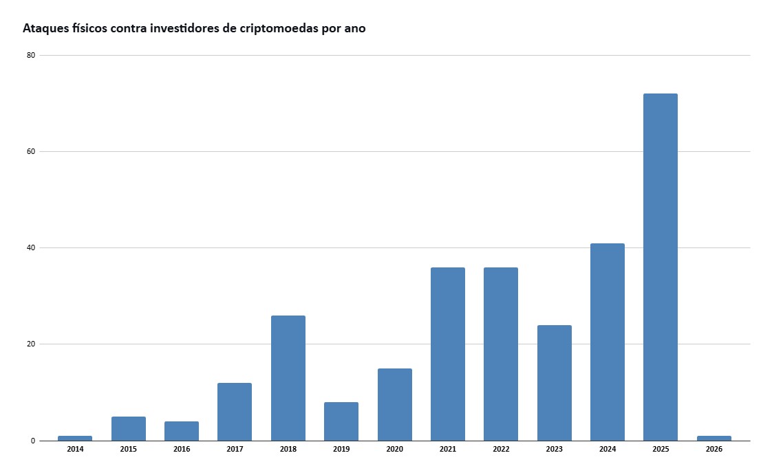 Dados compilados pelo desenvolvedor Jameson Lopp mostram que a França foi palco de 19 dos 72 casos de ataques físicos contra investidores de criptomoedas em 2025. O primeiro deles aconteceu no dia 1º de janeiro.