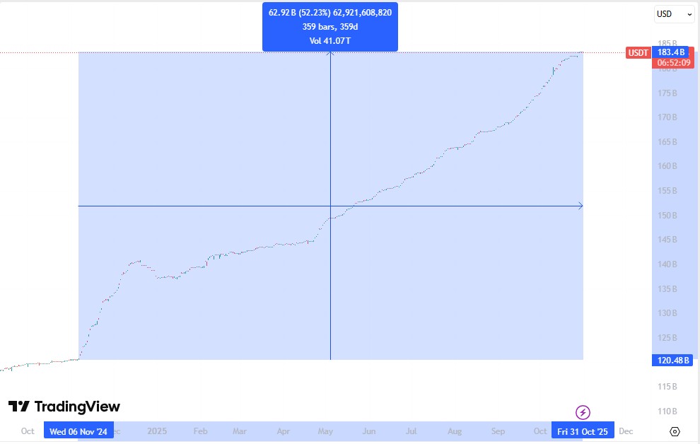- Aumento de 17 bilhões na oferta de USDT, no 3º trimestre de 2025.