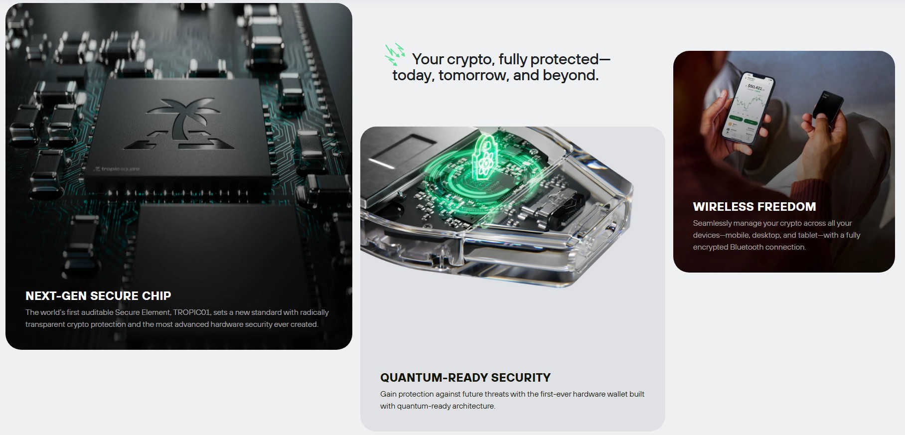 A carteira estará disponível em três cores: Preto Carvão, Verde Obsidiana e Laranja Bitcoin. Enquanto as duas primeiras trabalham com uma ampla gama de criptomoedas, a última é dedicada somente ao Bitcoin.